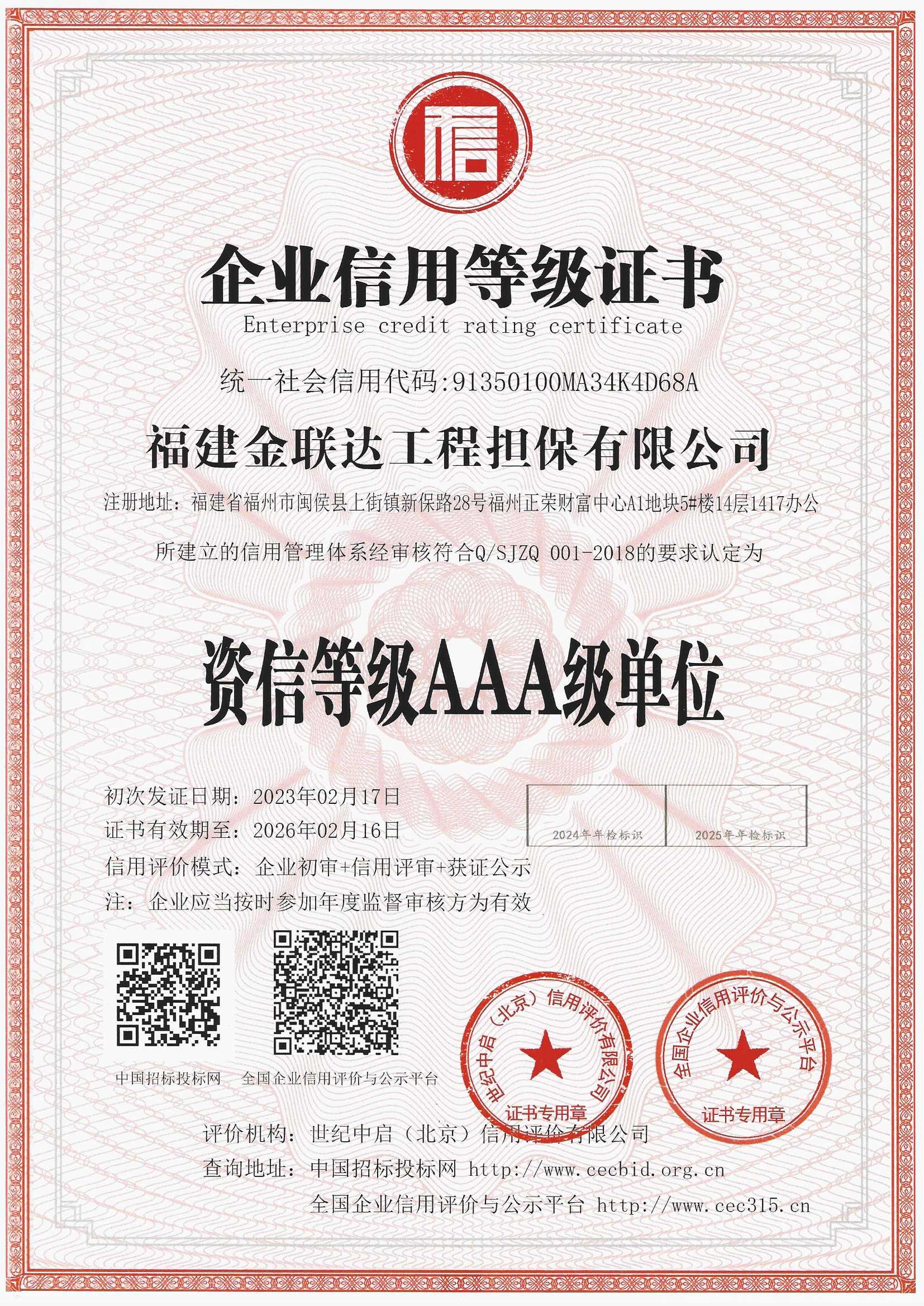 福建金聯(lián)達工程擔保有限公司,成立日期2020年8月,注冊資金5000萬元整,注冊地址位于福建省福州市閩侯縣上街鎮(zhèn)新保路28號福州正榮財富中心A1地塊5#樓14層1417辦公。秉承著為建筑企業(yè)服務的理念,致力于工程擔保行業(yè),攜手各金融機構,為貫徹國家對建筑企業(yè)減負的政策貢獻力量。